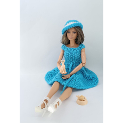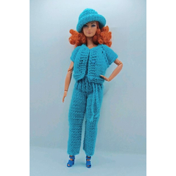 Эксклюзивный мятный вязаный комплект для кукол Барби: комбинезон, шляпка и вешалка | Maryeva