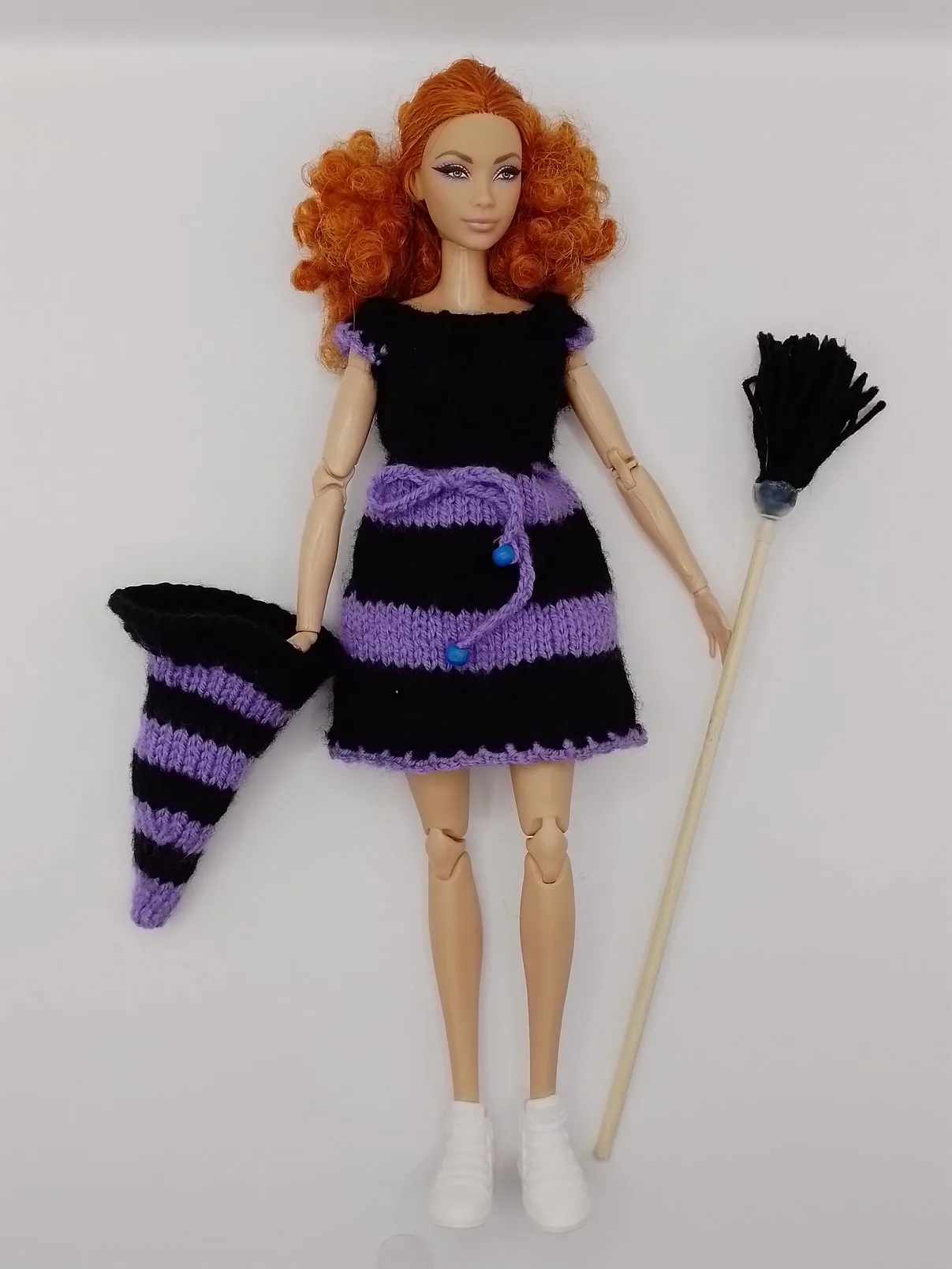 Обзор карнавального костюма «Ведьма» для Барби - полный набор с метлой