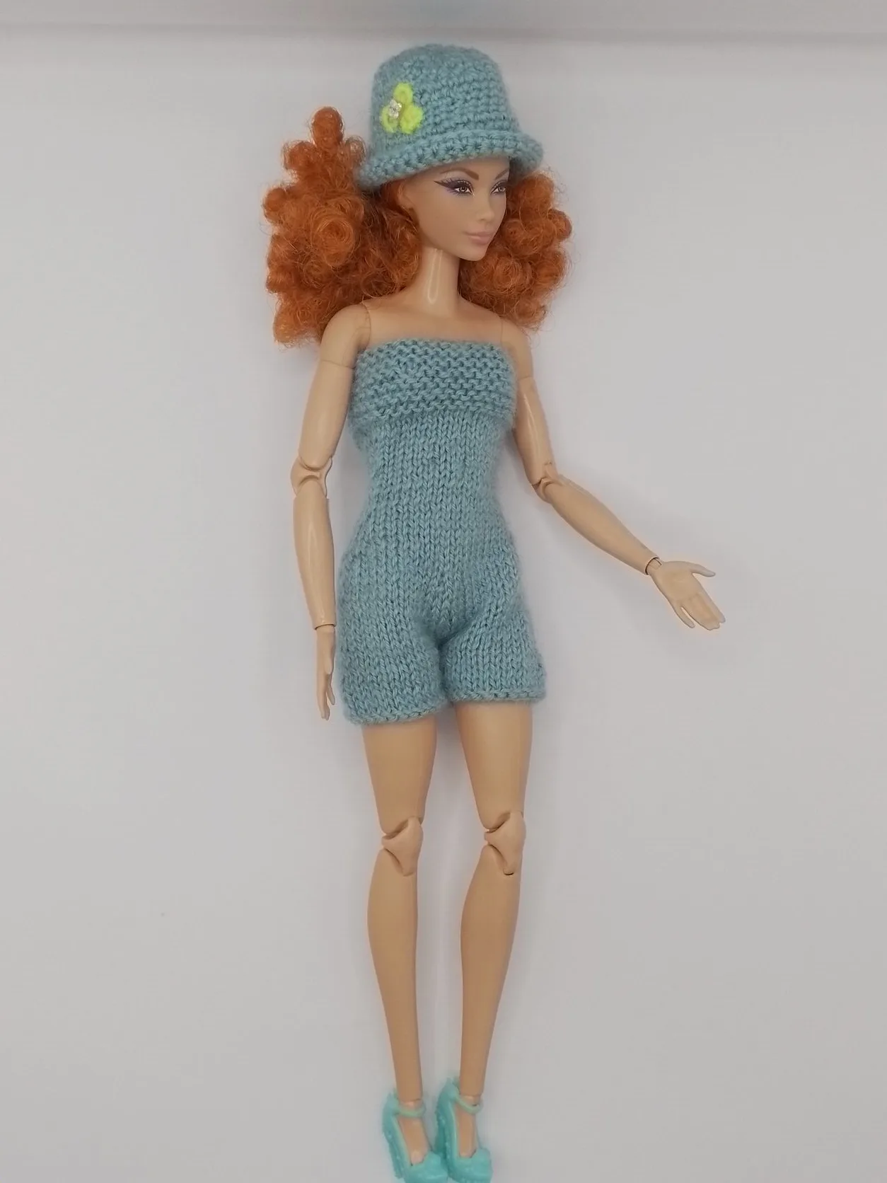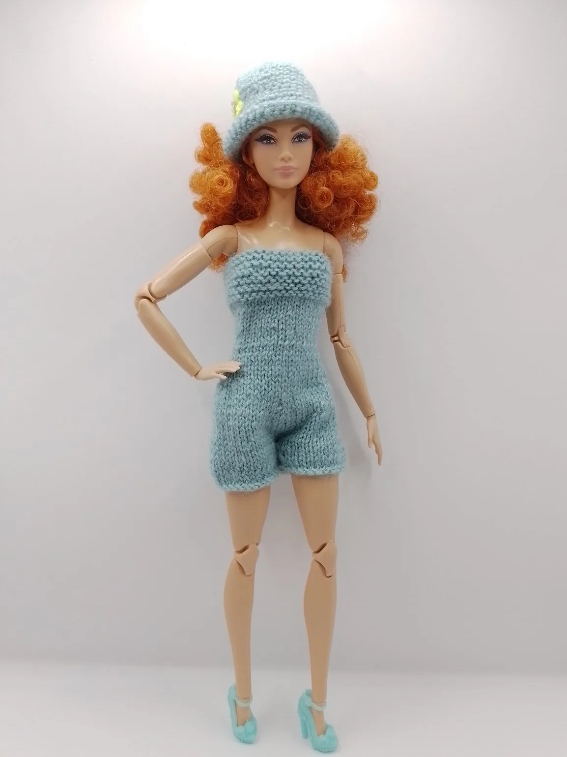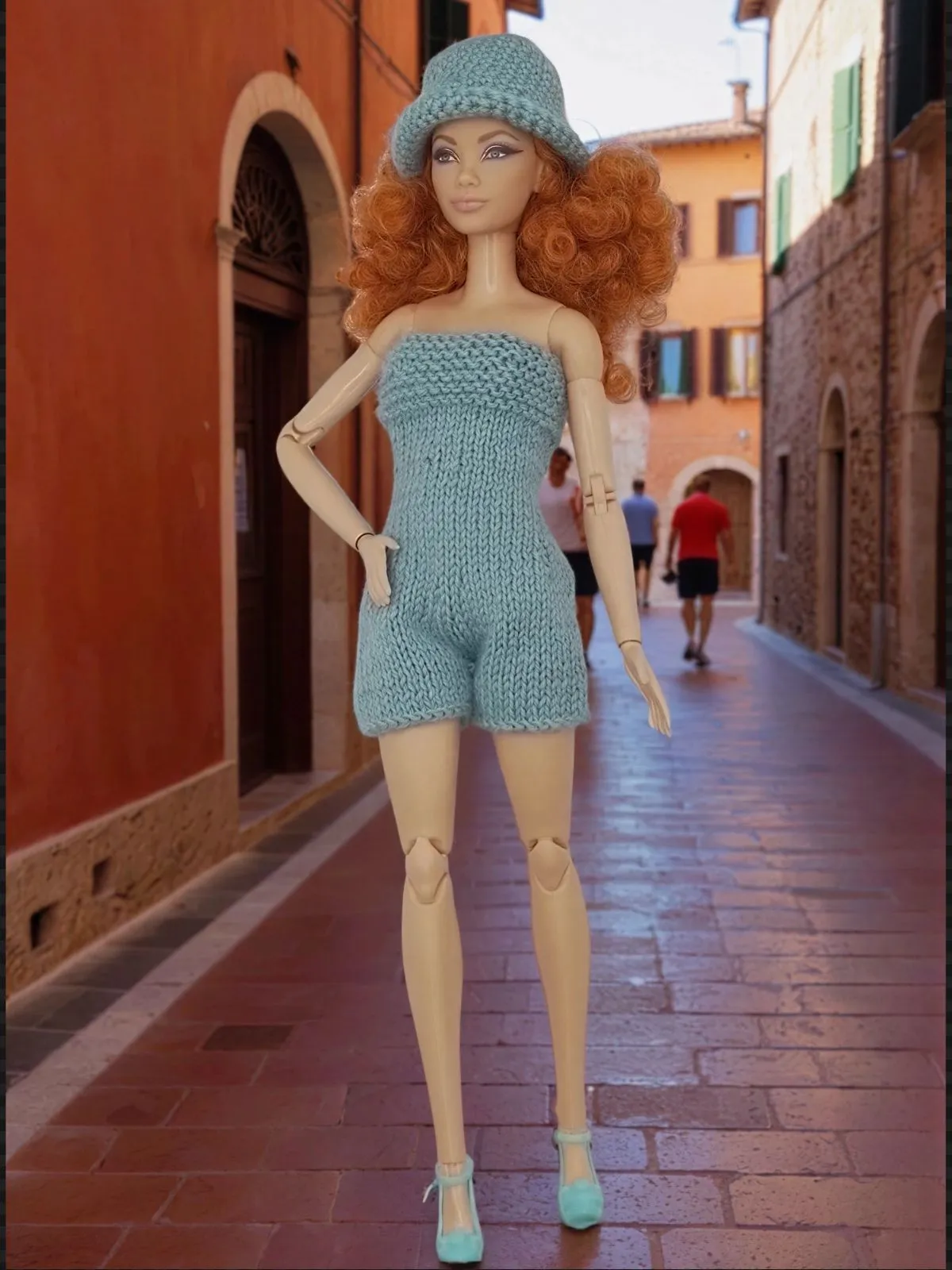 Безупречная деталировка: Уютный комбинезон и изящная шляпка, украшенная рукотворным цветком, подчеркивают филигранную работу мастера.