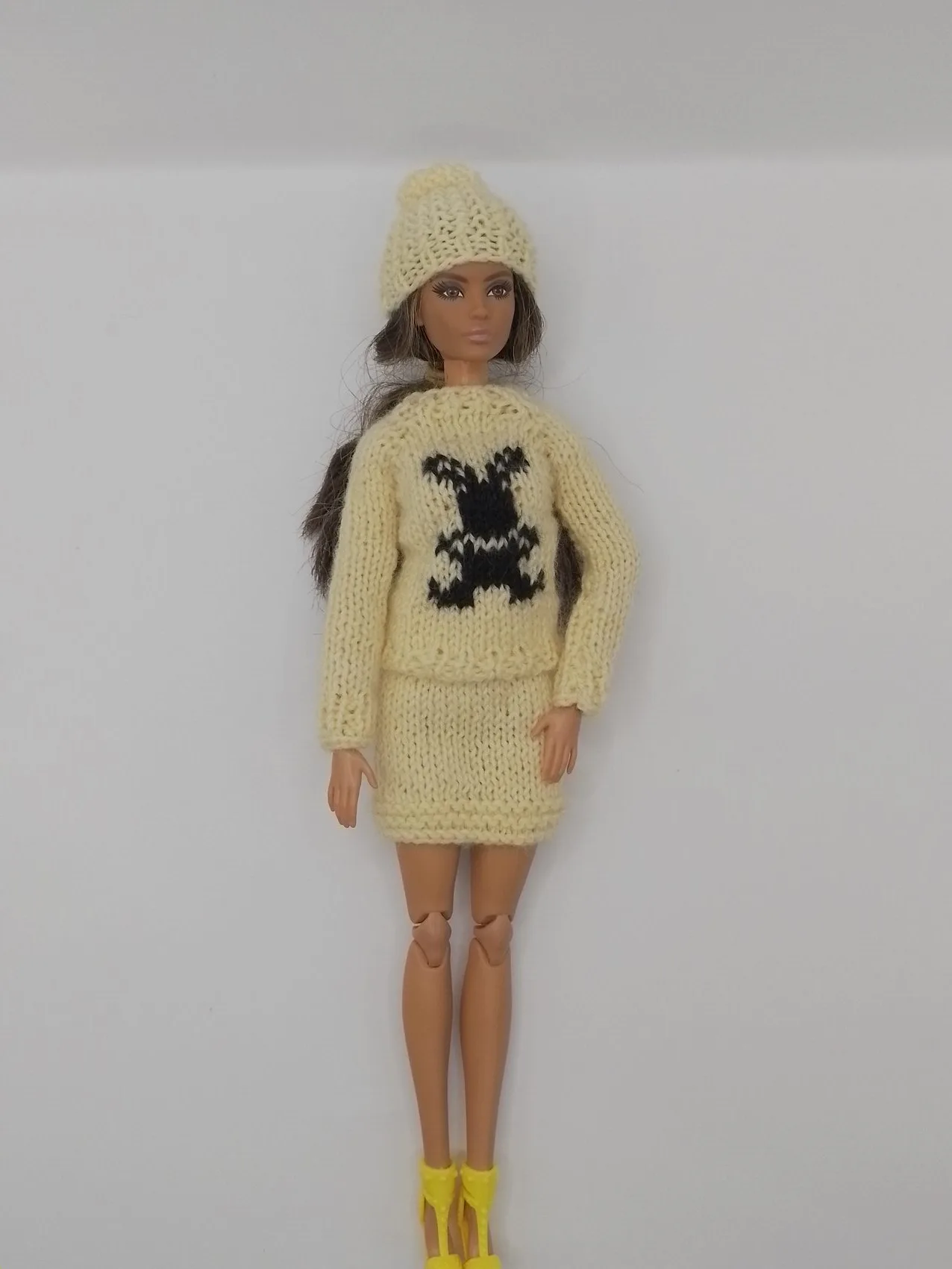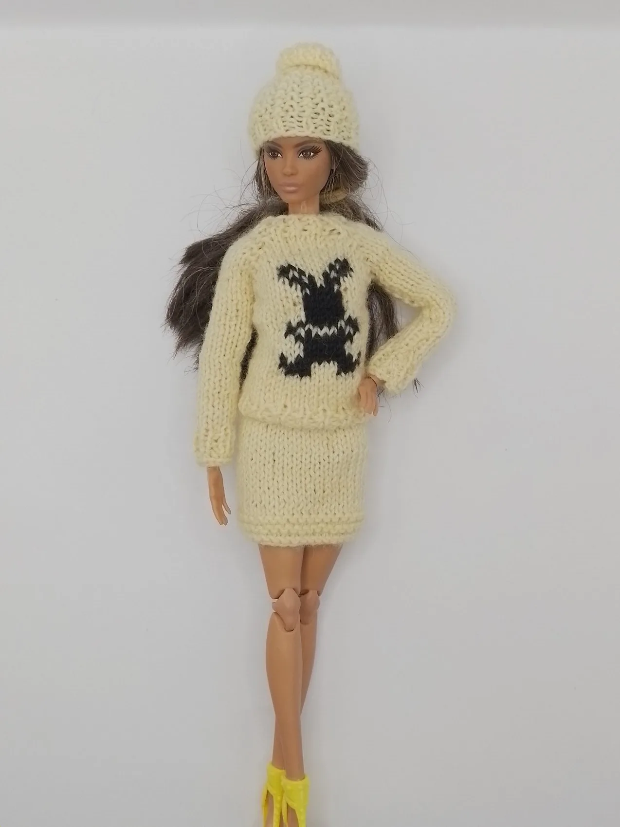 Продуманный дизайн: В комплект входят модный пуловер с уникальным принтом, элегантная юбка-карандаш и стильная шапочка с прорезью для волос — все, что нужно для создания complete образа.