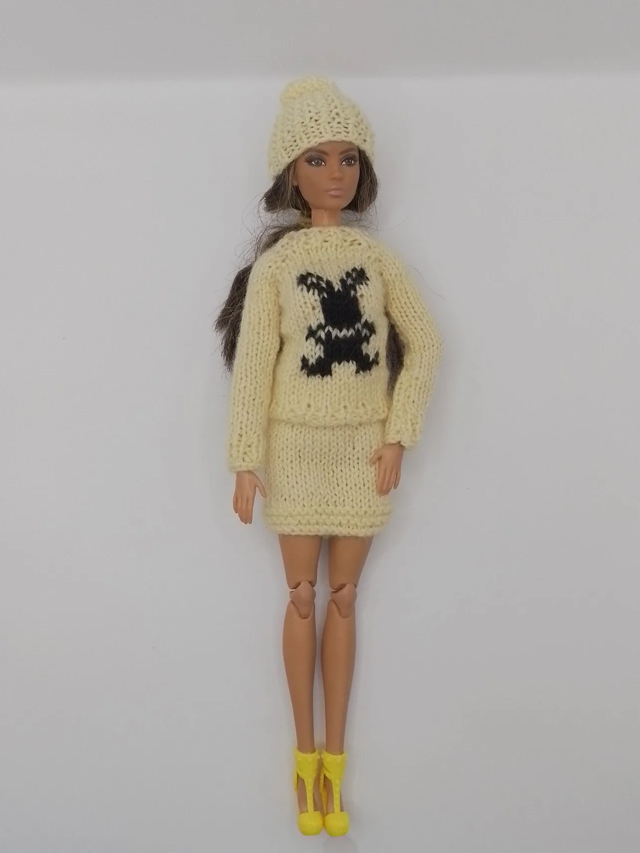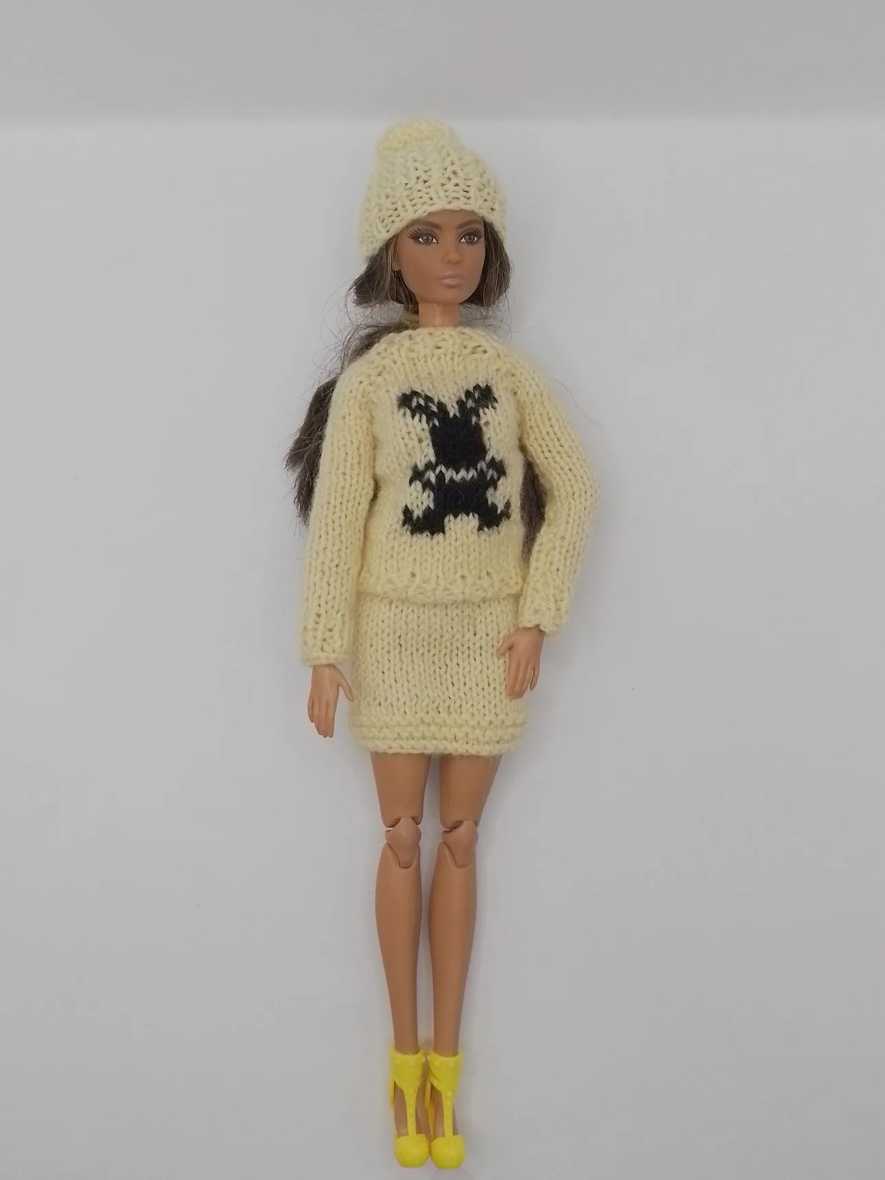 Бренд Maryeva представляет очаровательный комплект для кукол, который не оставит равнодушной ни одну маленькую модницу! Нежный светло-желтый ансамбль с модным принтом "Зайчик" создаст стильный и современный образ для вашей куклы.