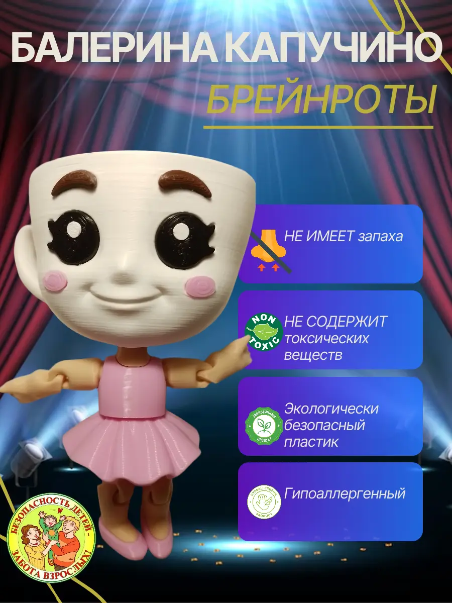 Тот самый ангел брейнрота у вас дома! Фигурка «Балерина Капучино» — это материализовавшийся вирусный мем, который захватил TikTok и YouTube. Абсурдный и обаятельный персонаж с итальянским именем теперь может занять почетное место в вашей коллекции.