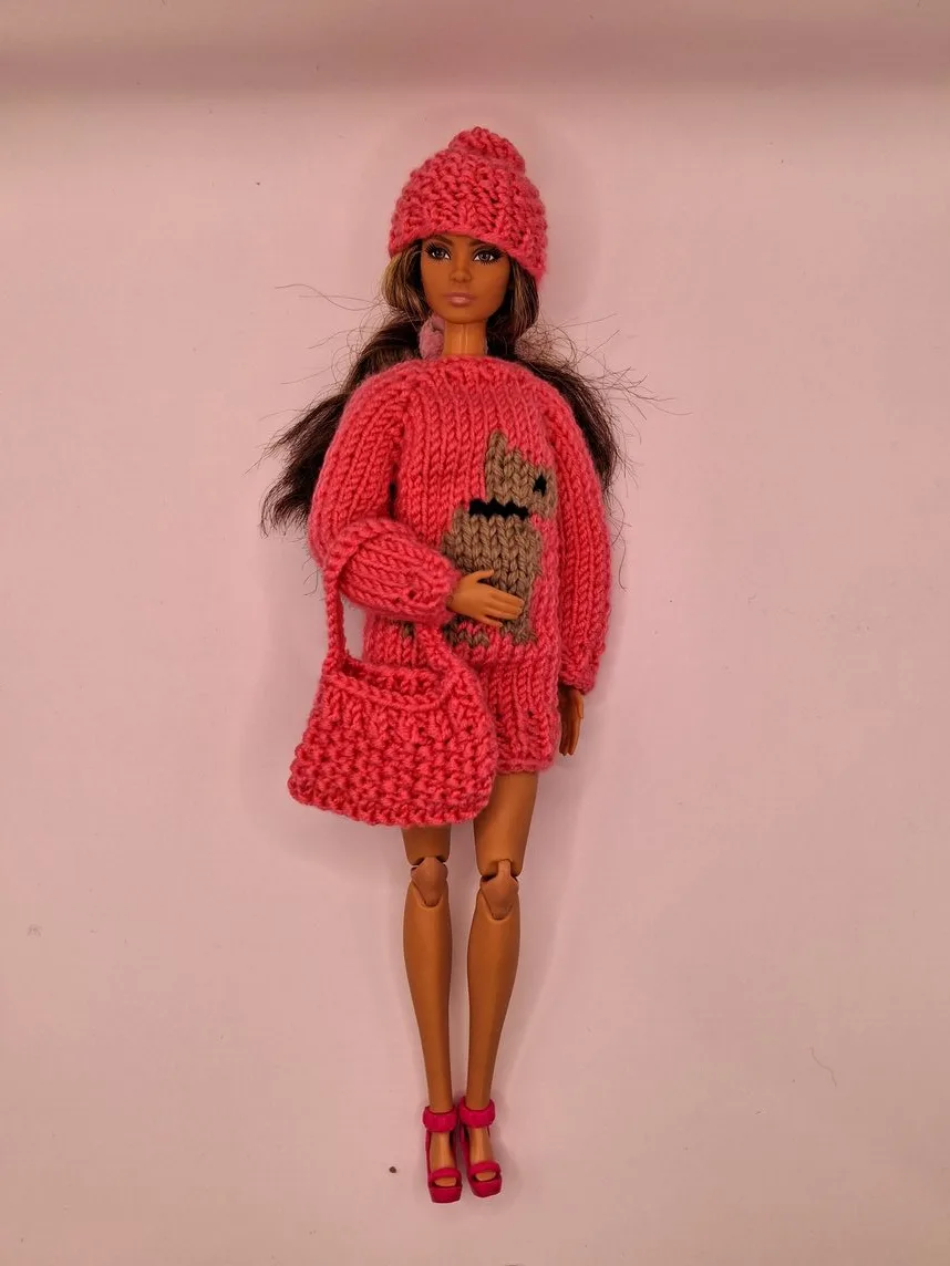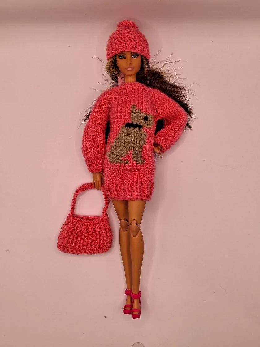 Яркий зимний комплект для Барби с принтом «Собачка» от Maryeva