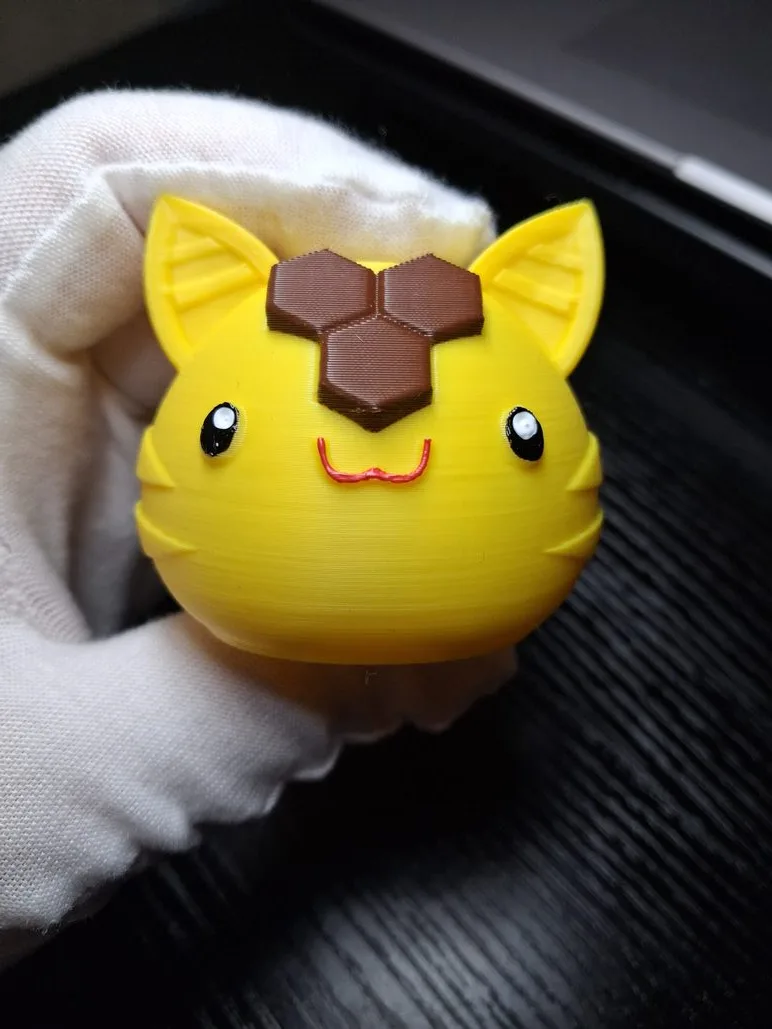 Tabby Slime — всеобщий любимец, кото-слайм с полосками и кошачьими повадками. Honey Slime — сладкий медовый слайм, который привлекает других слаймов своим ароматом. Их гибрид — Honey Tabby Largo — получился просто неотразимым!